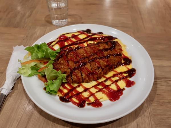 列車の中で山ちゃんを食べようと思ったけど、ニオイがやばいかなと思って却下。下着を途中で調達。福井県越前市のご当地グルメ、ボルガライス。