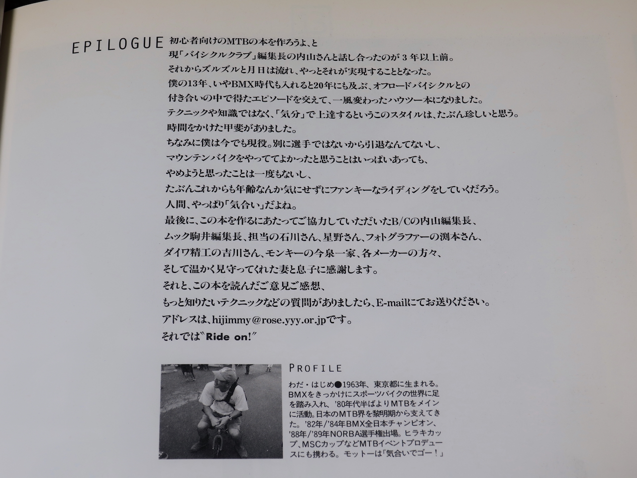 僕はマウンテンバイクに乗り始める前、長い間BMX(バイシクルモトクロス)に乗っていた。BMXに夢中だった僕には「マウンテンバイクはオジサンの乗り物」という認識があり、あんなの乗ってられないよ、というのが本音だった。