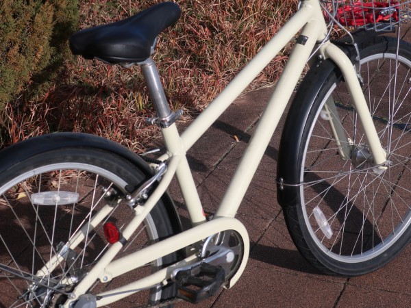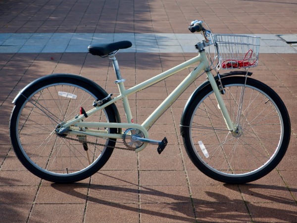 無印良品のアルミ26型自転車の血を引く現行モデルは、26型フル装備自転車。親子で揃えると可愛いと思う。