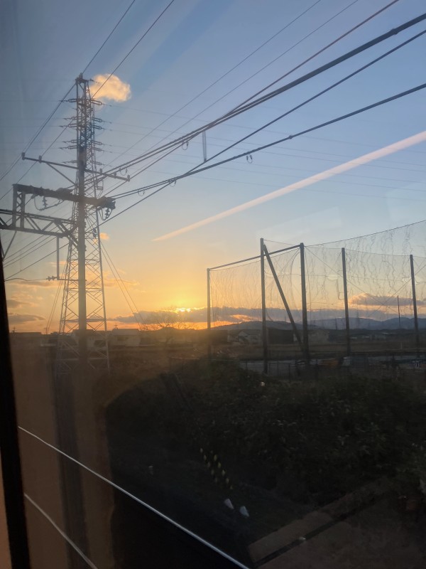 ひのとりに乗って出張でえす。防寒対策もバッチリ、釣り用のやつを持ってきた。