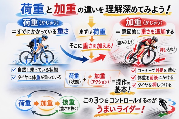 ・体を沈み込ませてタイヤを押さえつける → 加重