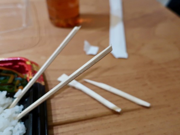 お昼のお弁当の割り箸を握ったら真っ二つに割れました。筋トレの成果が出てうれしいです。