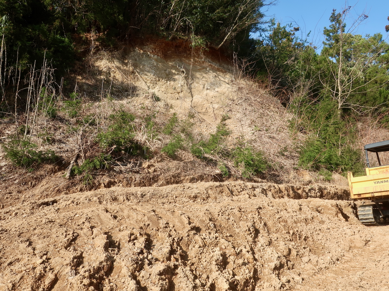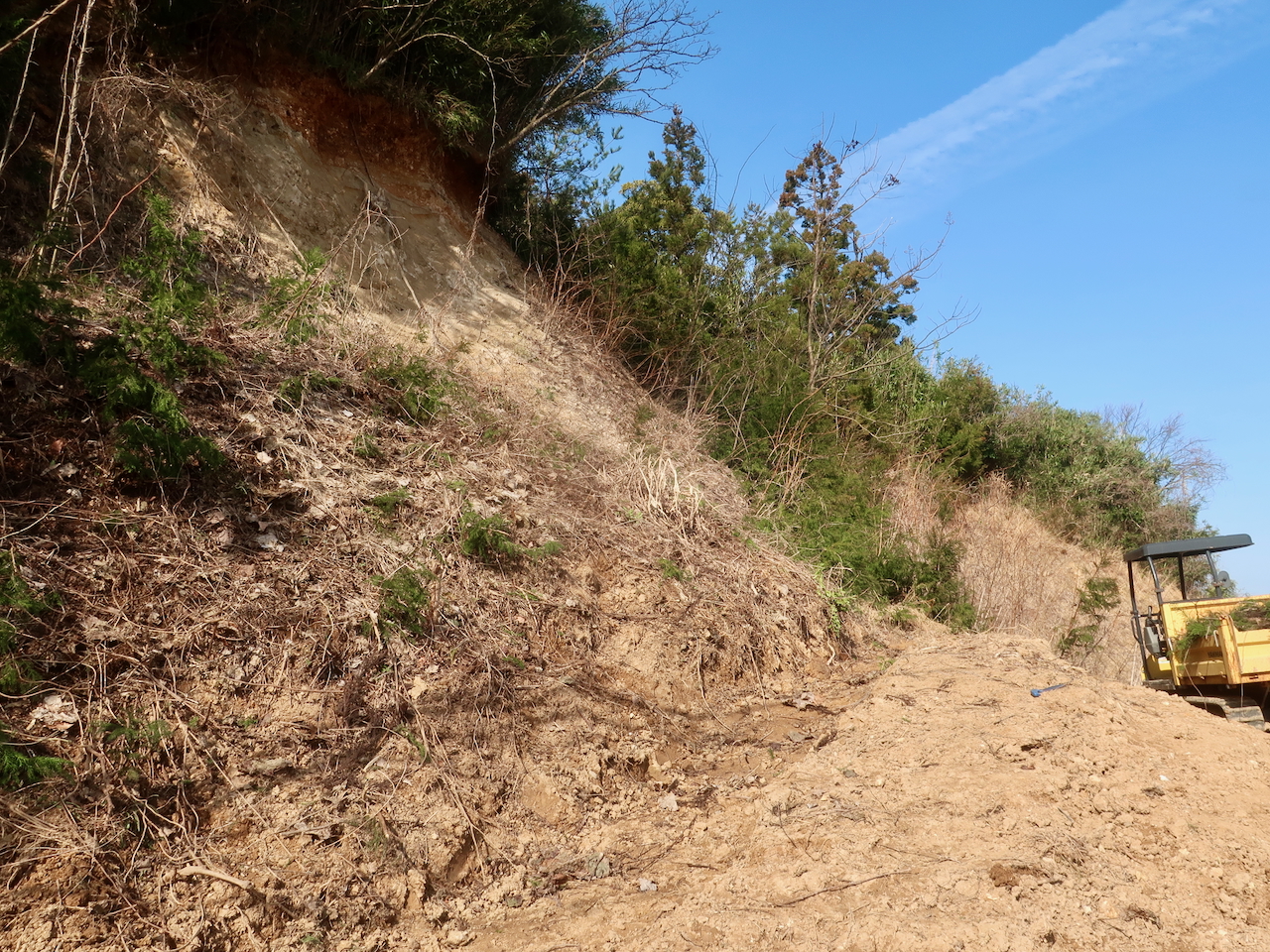 昔、こういう飴ってなかった?棒に三角の表面がザラザラしてて。さて本日の作業は引き続き土づくり。淡々と天地返し。天と地がひっくり返ると地面が綺麗に広がっていくので、景色も広く感じますね〜。天地返しはいろいろと合理的。そして、MTBのための整備作業が結果的に里山の整備になっていく感じも合理的。